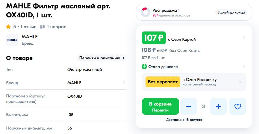 Прикупил я себе на озоне масляный фильтр MAHLE OX401D с доставкой из Китая. по 107 руб штука. Вчера получил. Качество на мой взгляд опушительное. Не разбираюсь в подделках, но я порой брал дешевые фильтра за эту цену брендов малоизвестных и они были общим качеством похуже. При этом они работали вполне нормально. В общем, придраться не к чему. Полиграфия на картоне и фильтре, качество в мелких деталях, качество резинки — все идеально. Бумага плотная и довольно жесткая. Следов клея или кривой укладки, разного расстояния между складками бумаги нигде не обнаружено. Рекомендую закупиться, пока есть в наличии.