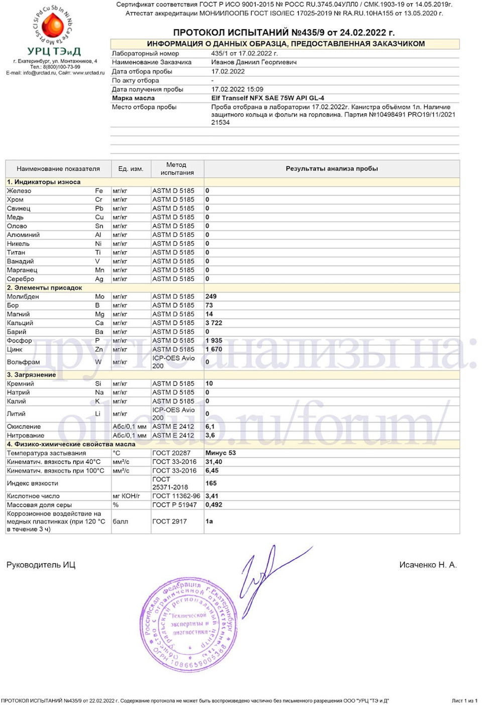 и попадается мне на глаза такой интересный паспорт масла ELF 75W GL-4. где серы мало, но зато неприлично много прочего ZDDP и вязкость как у нового допуска VAG. интересный франкенштейн, формально до GL-5 не дотягивает хотя бы по содержанию серы.